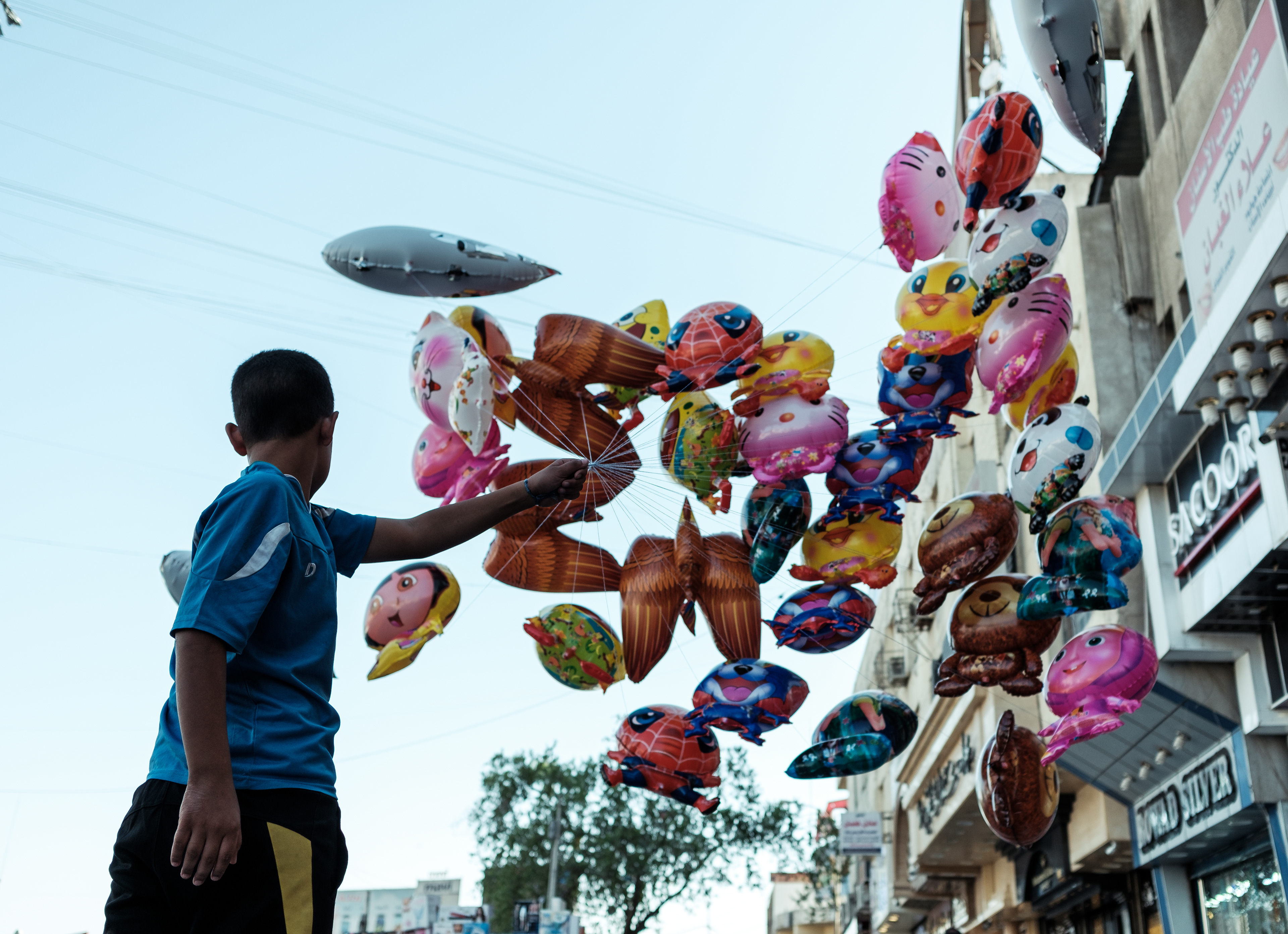 The Blloons seller- a young boy sells inflated Helium Balloons in the streets of Hayy Al-Mansour -Baghdad 2017