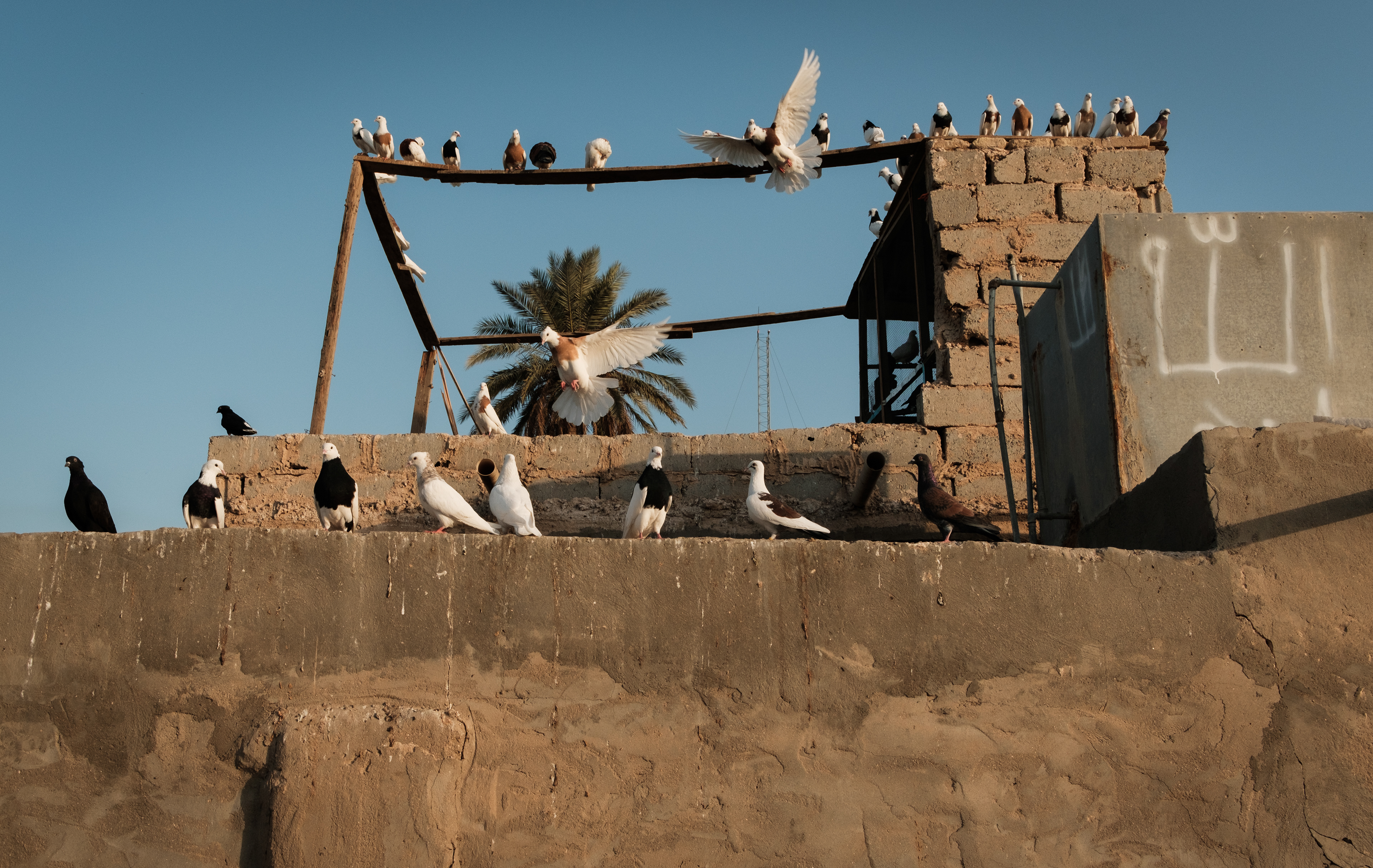 A group of pigeons are gathering outside bird coop in Mussayeb 60 Kms south of Bghdad ,2017