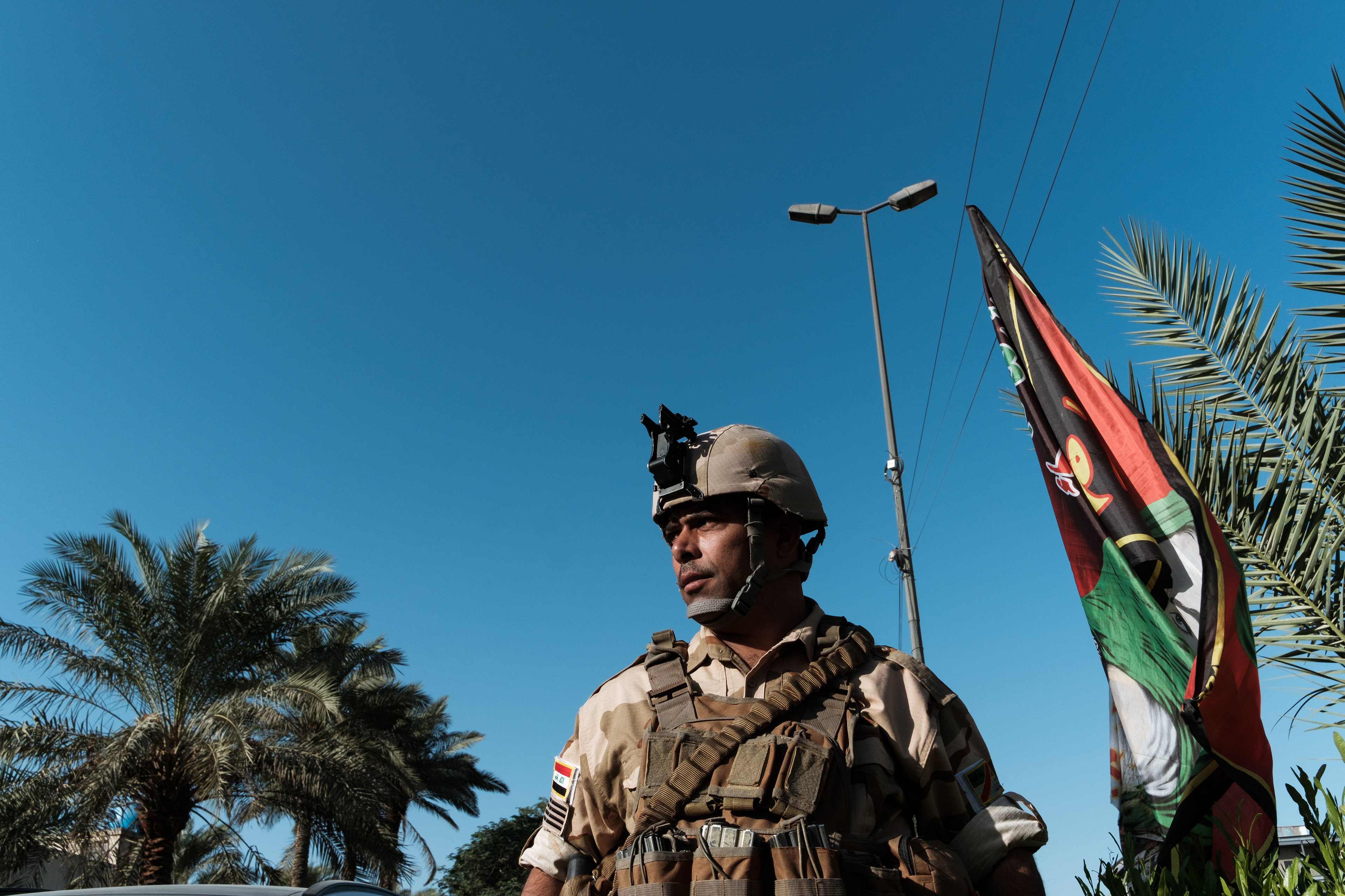 An Iraqi soldier monitor a checkpoint west of Baghdad 2017