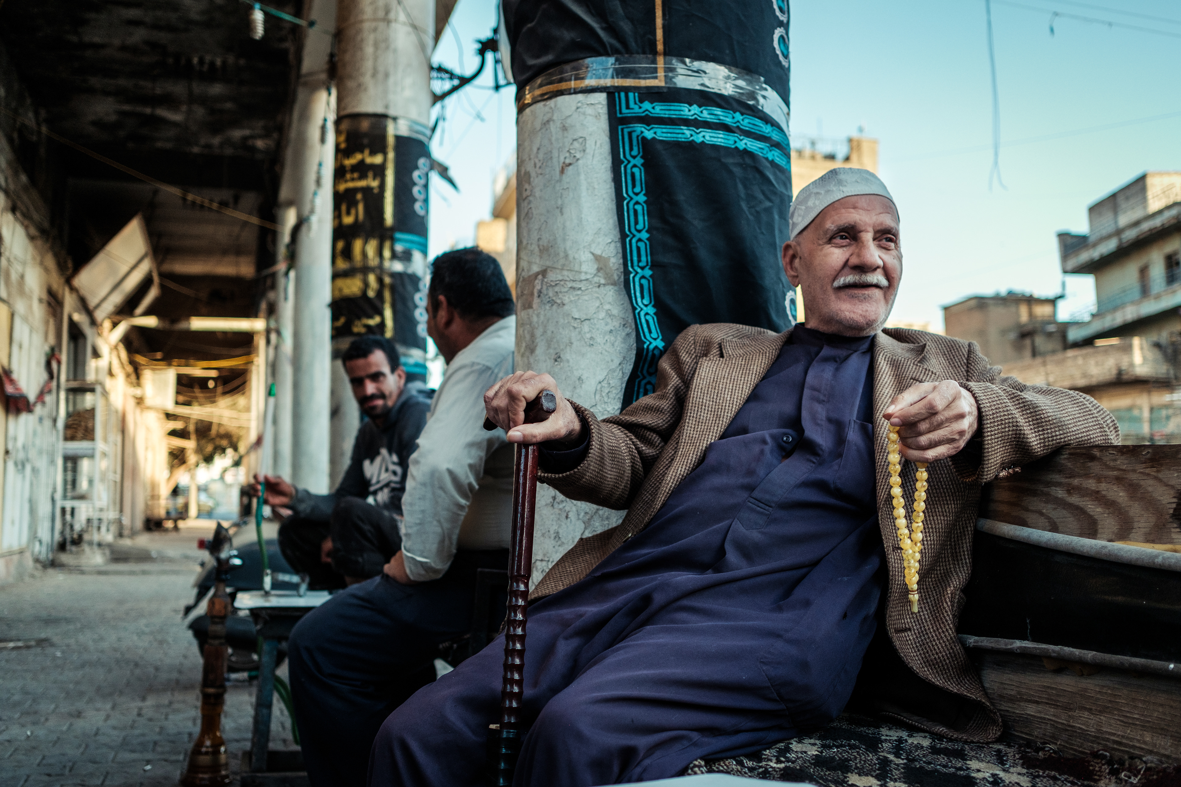 An old man chiling in a traditional coffee shop in Baghdad. 2018