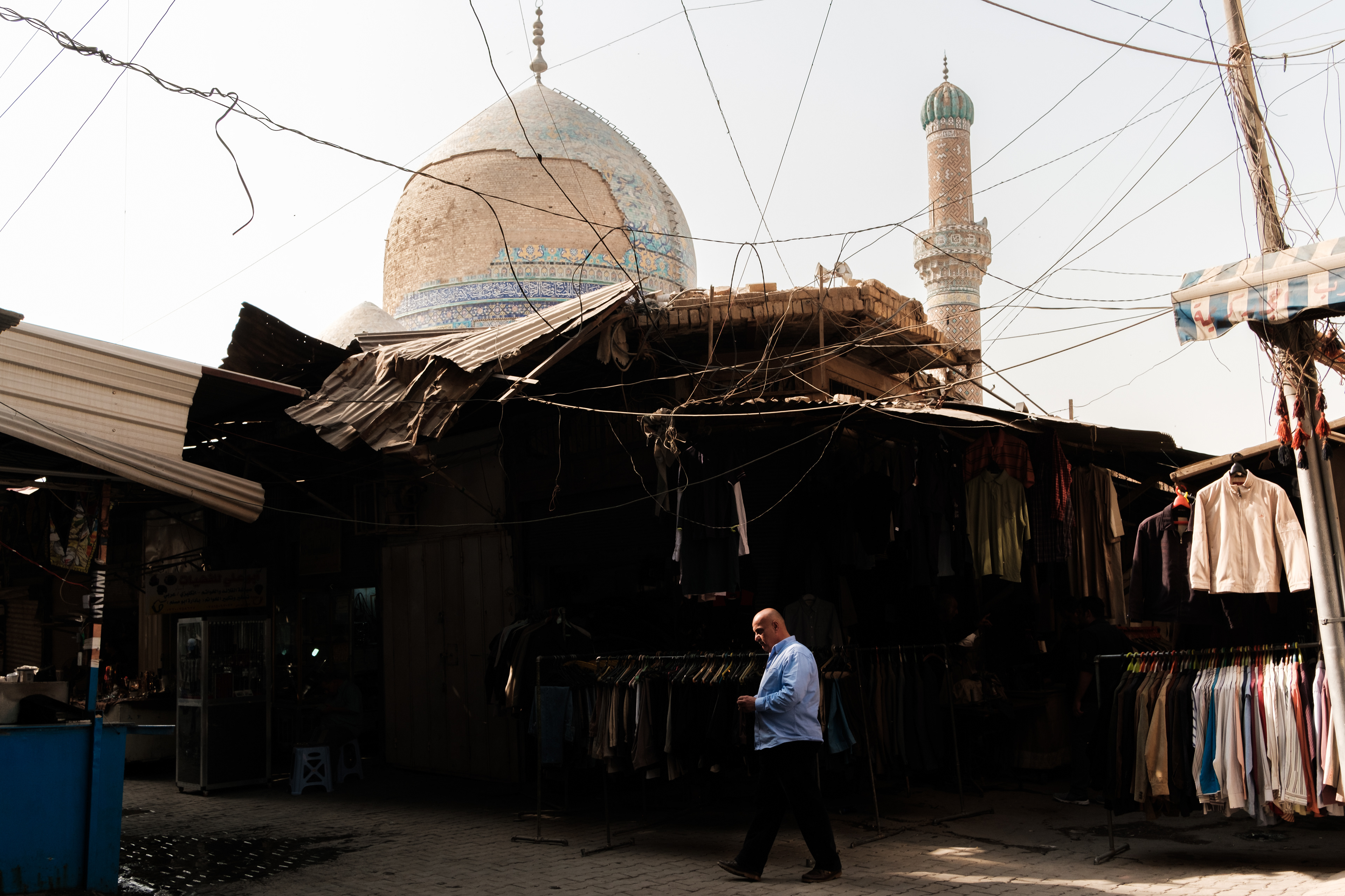 A man walks inside the old Souk of cloths at Al-Midan in Baghdad Iraq. 2017